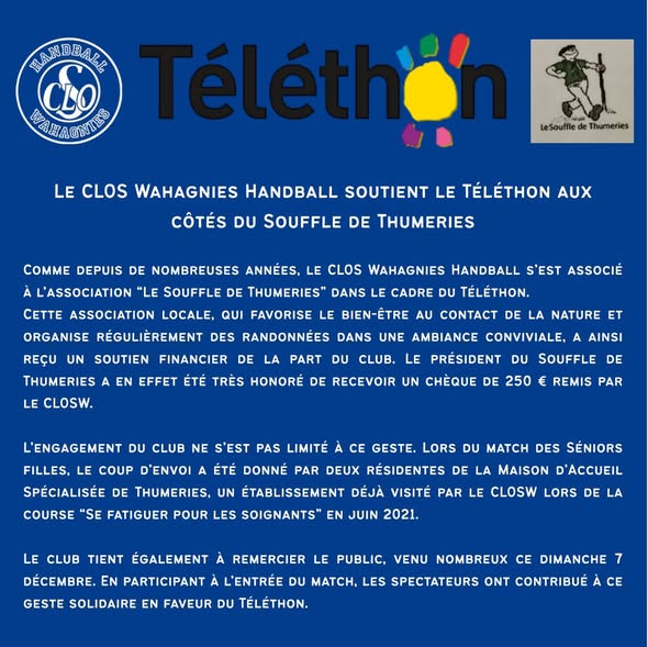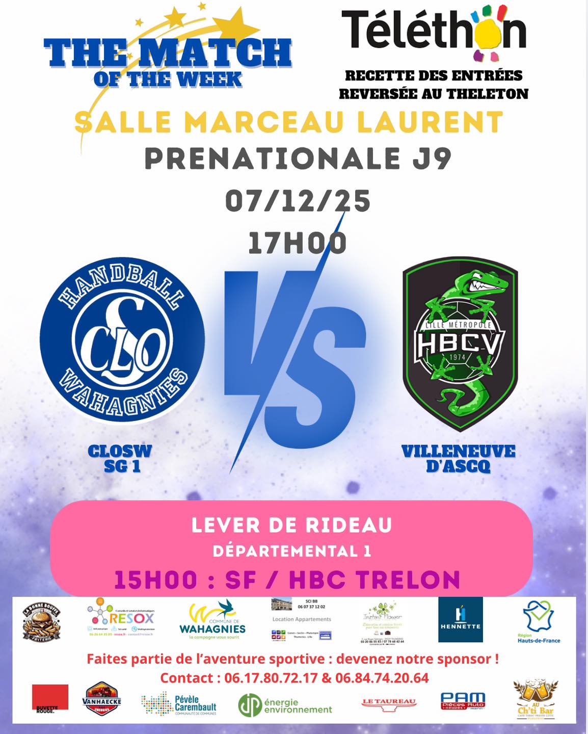 Rendez-vous ce dimanche pour une après-midi 100 % handball : le coup d’envoi du match des garçons sera donné à 17h00. En lever de rideau, les seniors filles ouvriront le bal avec la réception du HBC Trélon à 15h00. Une belle occasion de venir encourager les deux équipes et de soutenir, par la même occasion, la cause du Téléthon.