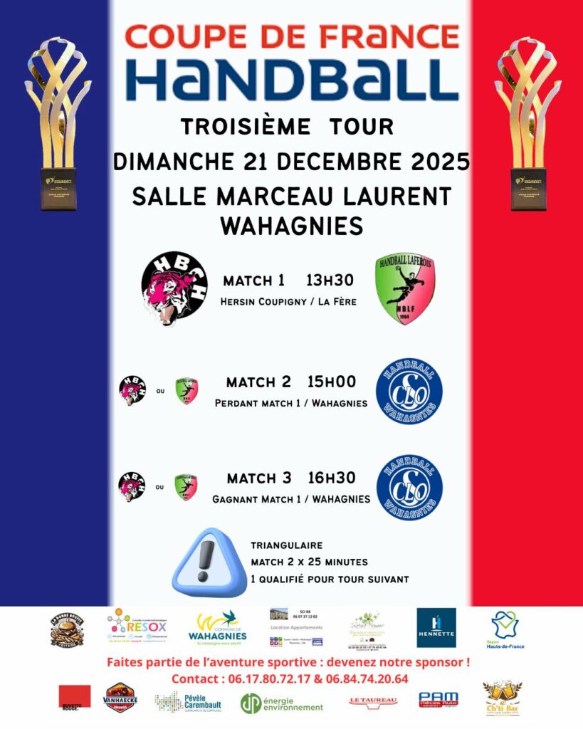 Ce dimanche 21 décembre, le CLOS Wahagnies Handball s’apprête à vivre un après-midi capital avec le 3ᵉ tour de la Coupe de France.