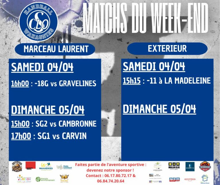 Actualités Monday MotivationLire La Suite… 6 avril 2026 Programme des 4 et 5 avril : 4 rencontres au menu pour un dimanche après-midi qui s’annonce électrique !Lire La Suite… 2 avril 2026 DERBY !Lire La Suite… 1 avril 2026 Week-end contrasté pour le handball wahagnisien, mais riche en enseignements et en émotions !Lire La Suite… 30 mars 2026 Week-end des 28 et 29 mars : un club entre pause et défisLire La Suite… 26 mars 2026 Un défi majuscule pour les -13 garçons face à l’USDKLire La Suite… 25 mars 2026 Tournoi LoisirLire La Suite… 24 mars 2026 1 2 3 … 11 ›