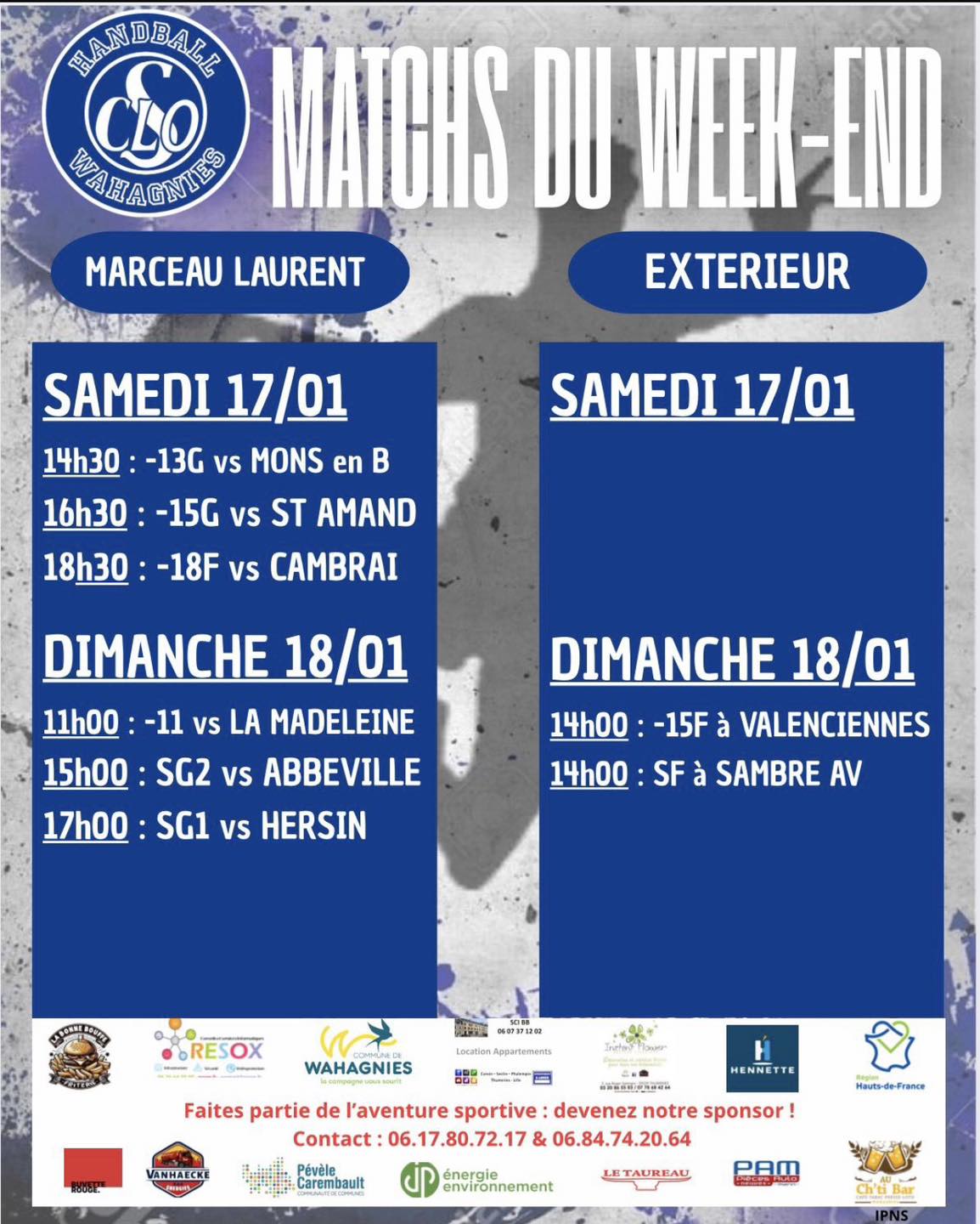 Puis viendra la grande messe dominicale du handball wahagnisien. Deux matchs, deux horaires fétiches (15h et 17h), une ambiance que les supporters adorent. Le programme promet d’être sportif, stressant et palpitant.