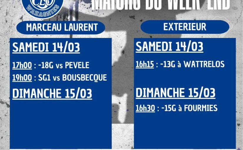 Les -15 garçons s’offrent quant à eux un déplacement dominical à Fourmies, où ils retrouveront le club local. Forts de leur belle victoire à domicile face à Mormal le 7 mars, les jeunes wahagnisiens auront à cœur de confirmer à l’extérieur afin de rester bien placés dans ce championnat.