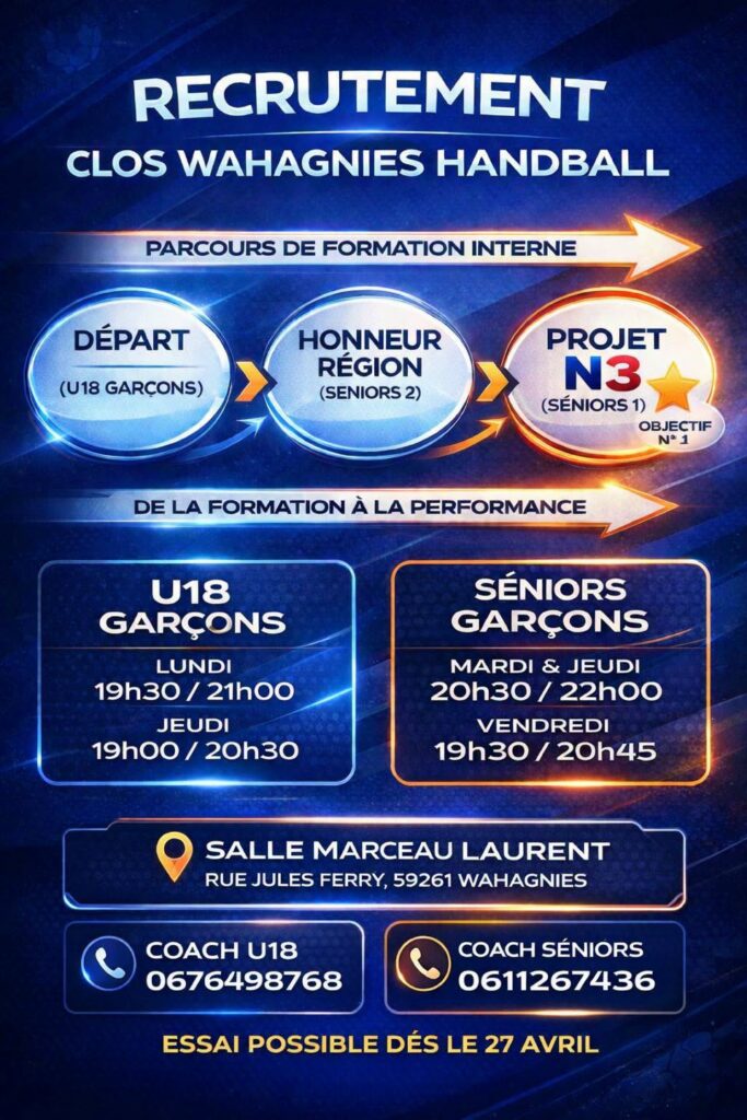 Le club lance un appel à tous les joueurs U18 et seniors prêts à s’engager dans une aventure sportive forte, structurée et tournée vers la performance.