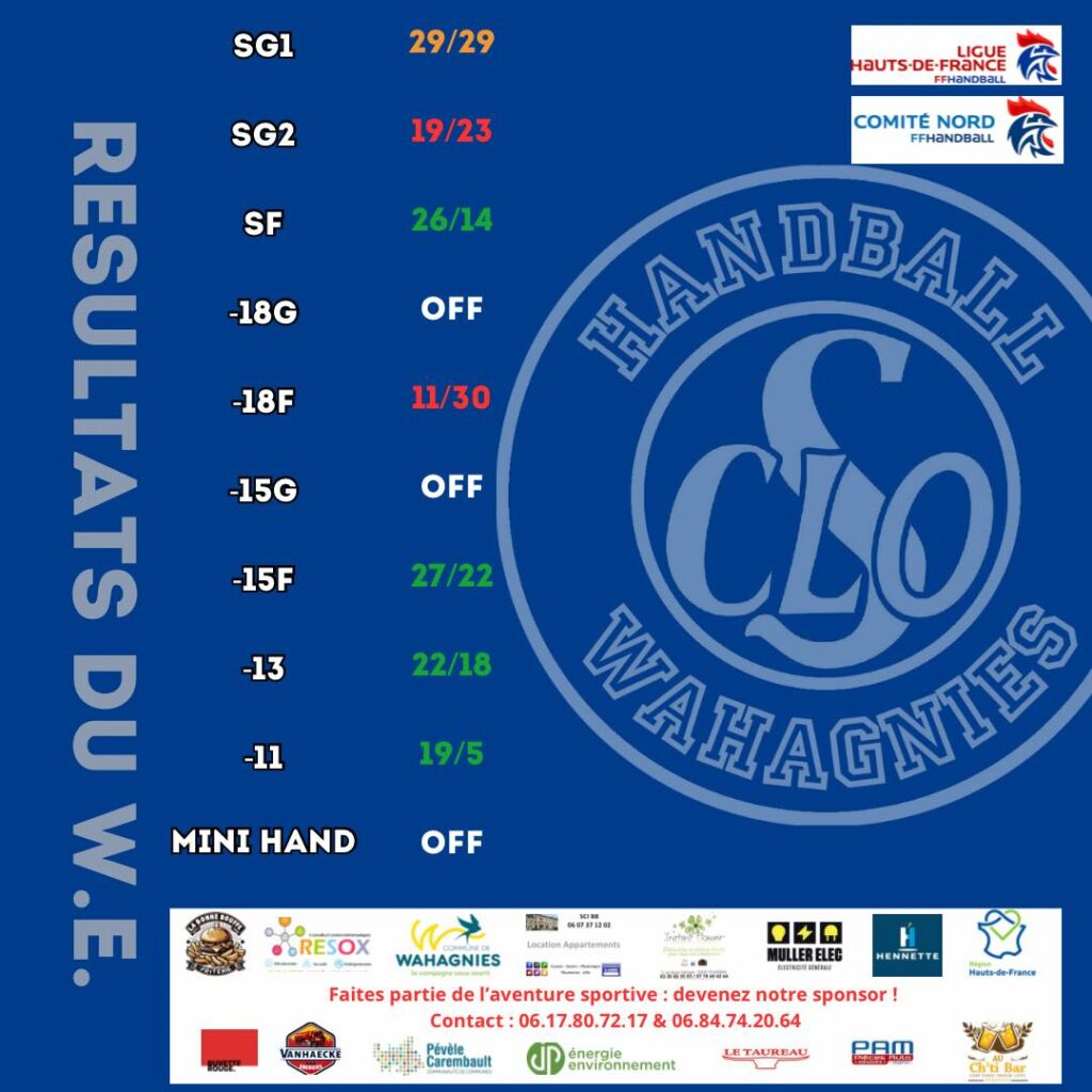 Un week-end réussi pour le CLOS Wahagnies Handball, où de belles victoires et de solides performances montrent l’énergie, le caractère et l’unité du club pour la suite de la saison
