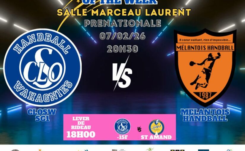 À noter également qu’en lever de rideau, les -15 filles de P. Lefrancq tenteront d’enchaîner une deuxième victoire consécutive. Les jeunes Wahagnisiennes accueilleront Saint-Amand Handball – Porte du Hainaut avec l’ambition de confirmer leurs progrès. Coup d’envoi de cette rencontre à 18h00