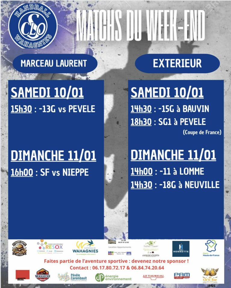 Actualités Un dimanche de feu à WahagniesLire La Suite… 14 janvier 2026 Un début d’année placé sous le signe de la convivialité au CLOS Wahagnies HandballLire La Suite… 13 janvier 2026 Monday MotivationLire La Suite… 12 janvier 2026 Et voici le programme du CLOSW pour ce week-end des 10 et 11 janvier !Lire La Suite… 8 janvier 2026 The Match of The WeekLire La Suite… 8 janvier 2026 Et revoilà la Coupe de France !Lire La Suite… 7 janvier 2026 Monday MotivationLire La Suite… 5 janvier 2026 ‹ 1 2 3 4 5 6 … 9 ›